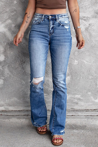 Distressed Flared Jeans with Pockets